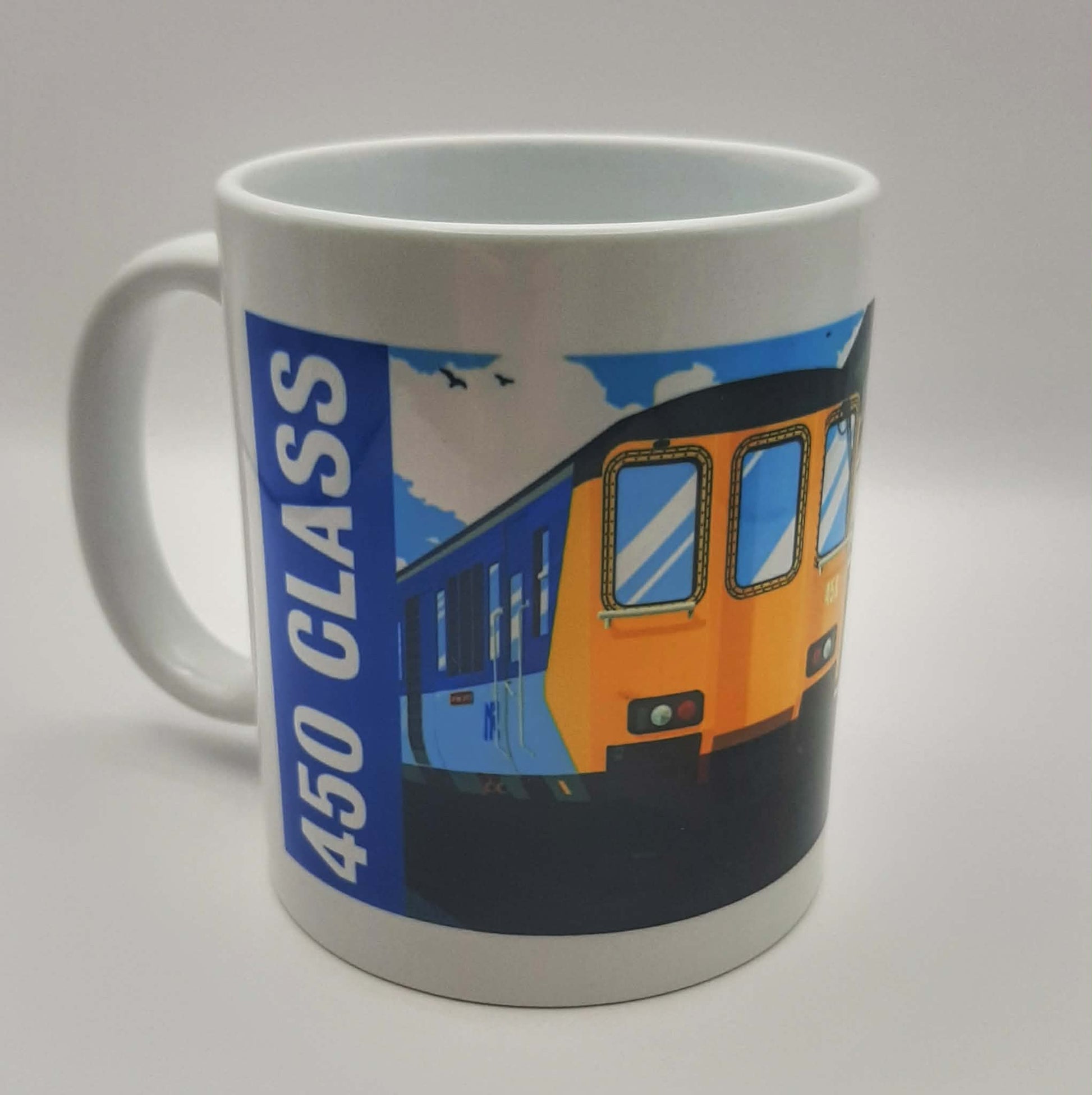 A mug featuring our NIR 450 Class, No. 458 "Antrim Castle", and the Northern Ireland Railways logo.